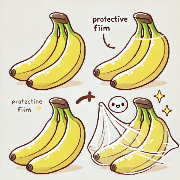 특수 코팅 필름은 바나나를 포함한 과일의 수명을 연장하기 위해 사용됩니다. 이 필름은 과일의 호흡을 조절하고 에틸렌 가스의 방출을 억제하여 갈변과 부패를 늦춥니다. 보호 필름은 투명하고 얇아 과일의 외관을 해치지 않으면서도 신선도를 유지합니다.