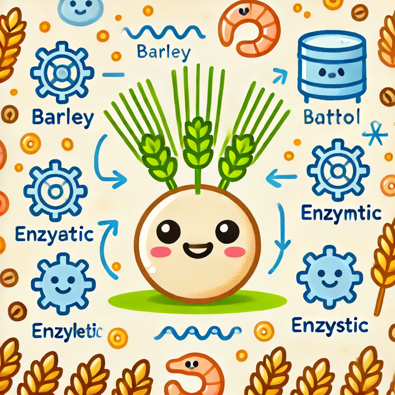 보리는 맥주 제조에서 가장 흔히 사용되는 원재료로, 몰팅 과정에서 전분을 당으로 변환하기 위해 발아 과정 을 거친다. 먼저 보리를 물에 담가 일정 기간 동안 흡수하게 하여 발아를 촉진시킨다. 발아 과정에서 아밀라아제(amylase)와 같은 효소가 활성화된다. 이 효소는 전분의 긴 사슬 구조를 단순한 당으로 잘게 분해하는 역할을 한다. 이 과정에서 전분이 당으로 전환되어 발효에 필요한 당분을 공급할 수 있게 된다.
