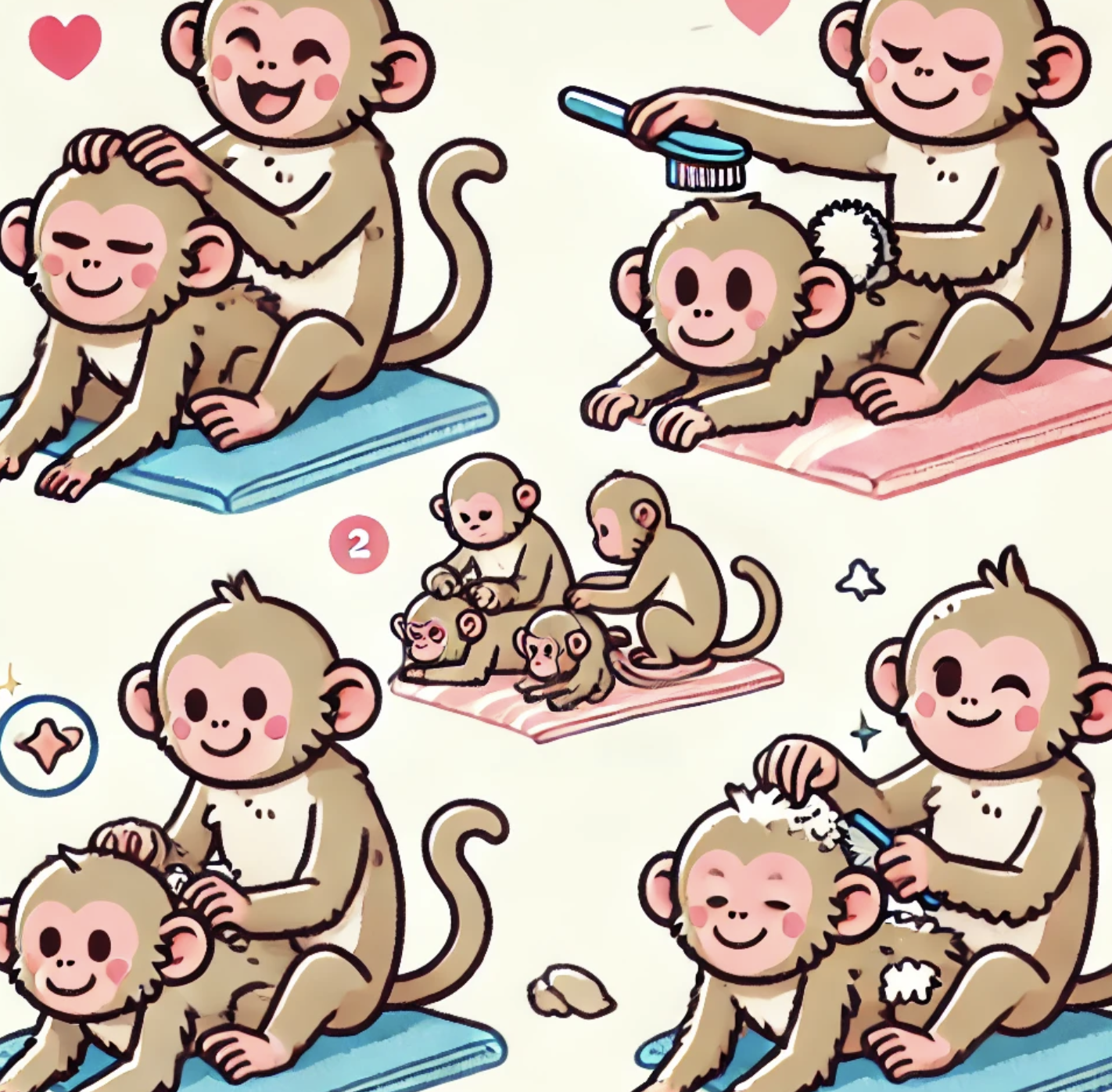 이러한 행동을 통해 원숭이들은 무리 내 조화와 친밀감 을 자연스럽게 유지하며, 건강한 사회적 관계를 지속적으로 강화해 나갑니다.
