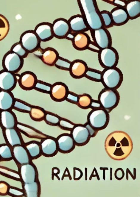 방사능의 주요 효과 중 하나는 DNA에 직접적인 손상 을 주는 것입니다. 방사선은 세포 내부로 들어가 이온화 작용을 일으키며, 이는 DNA 가닥이 끊어지거나 화학적 변형을 초래하게 됩니다. 이러한 이중 가닥 절단(double-strand break)이나 염기 변형 이 발생하면 세포는 이를 복구하려 하지만, 불완전하거나 잘못된 복구가 이루어질 수 있습니다. 그 결과 돌연변이 가 발생하여 신체적 변형으로 이어질 수 있습니다.