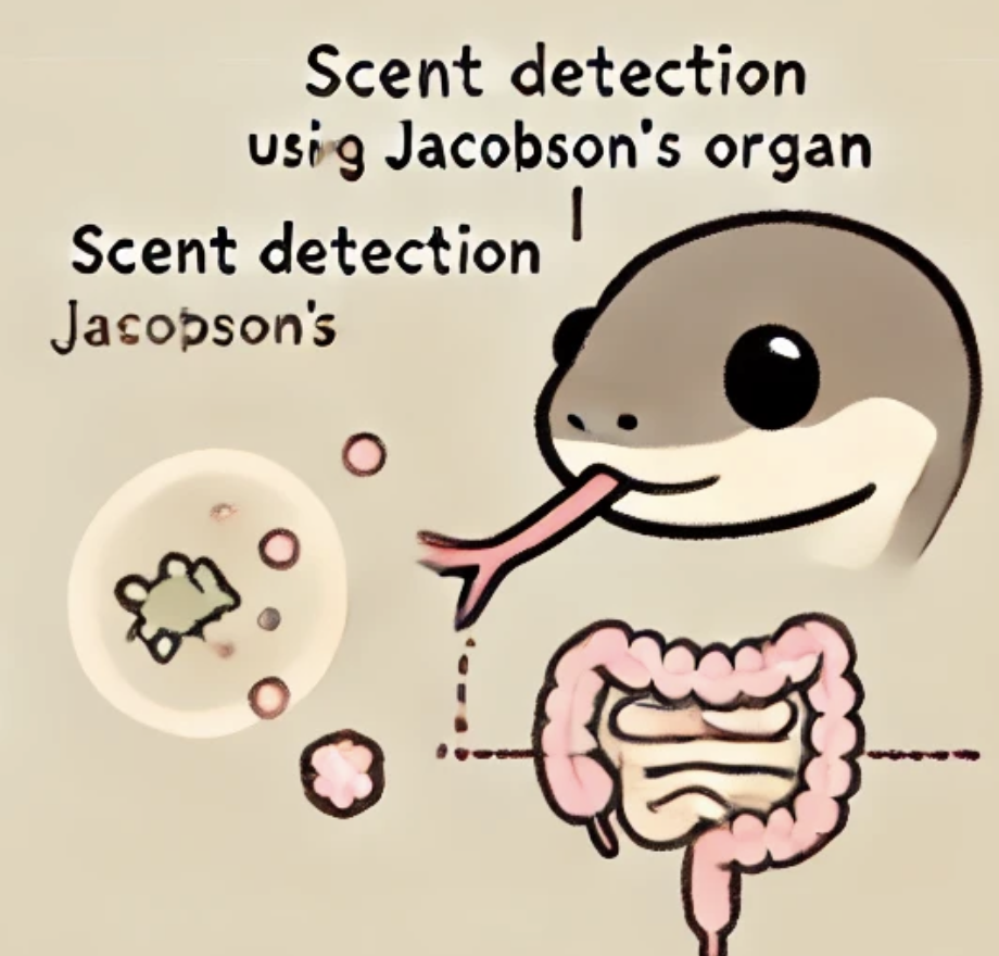 뱀의 혀는 길고 갈라져 있는 형태로, 이 갈라진 혀를 통해 냄새 입자가 한쪽에 더 많이 붙는지를 감지할 수 있습니다. 이를 통해 뱀은 냄새의 방향을 구체적으로 파악 하며, 어떤 방향에서 냄새가 강하게 나오는지를 이해할 수 있습니다. 이러한 방식은 특히 야행성 동물인 뱀이 어두운 환경에서도 먹잇감을 탐지하는 데 매우 유리합니다.