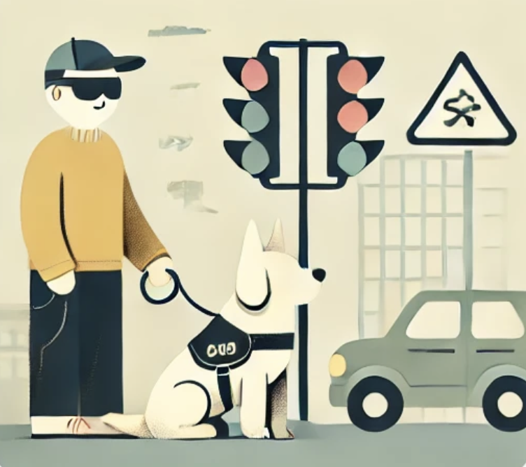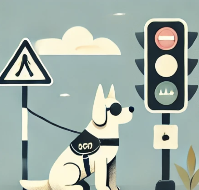 안내견은 사람의 지시에 따라 움직이기 때문에, 신호등이 있는 위치에서 대기하고 반응하는 방식 을 배우게 됩니다. 예를 들어, 신호등 앞에서 주인이 ‘멈춰’ 또는 ‘앞으로’라는 명령을 내리면, 안내견은 주인이 주는 음성 신호와 주변의 명암 변화 를 인식해 행동을 결정 하게 됩니다. 이처럼 안내견은 명령과 훈련을 통해 특정 상황에 맞는 행동을 선택하고, 주인을 안전하게 이끄는 역할을 합니다.