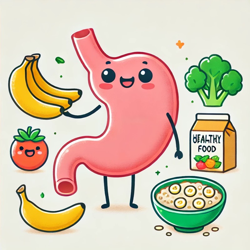 - 알칼리성 음식(바나나, 감자, 당근 등)은 위산을 중화하고 점막을 보호하는 역할을 합니다.