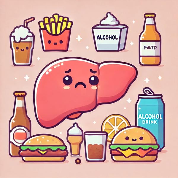 - 알코올 – 간세포를 손상시키고, 지방간과 간경변을 유발할 수 있음.