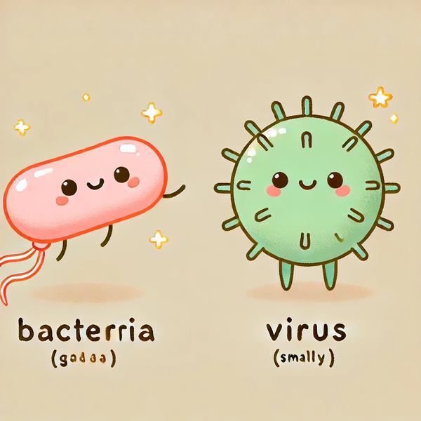 세균과 바이러스는 근본적으로 다른 미생물입니다. 세균은 독립적으로 살아갈 수 있는 단세포 생물 이고, 바이러스는 숙주 없이는 생존할 수 없는 비세포성 존재 입니다. 또한, 세균 감염은 항생제로 치료할 수 있지만, 바이러스 감염은 항생제로 치료되지 않고 백신이나 항바이러스제가 필요합니다.