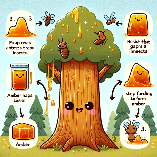 - 화석화 과정: 수지가 땅에 묻혀 오랜 시간 동안 압력과 열을 받아 화석이 되는 과정.