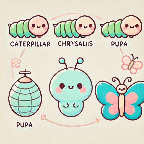 완전변태는 알 → 애벌레(유충) → 번데기 → 성충 의 4단계를 거칩니다. 각 단계는 형태와 역할이 완전히 다르며 , 가장 극적인 변화는 번데기에서 성충으로 탈바꿈하는 순간입니다. 대표적인 예로는 나비, 딱정벌레, 파리, 벌 등이 있습니다.