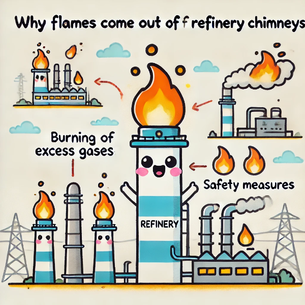 이처럼 정유소에서는 안전을 위해 굴뚝에서 가스를 불태우는 방법을 선택합니다. 이는 폭발 위험을 줄이고, 비용 효율적으로 가스를 처리하는 방법입니다.